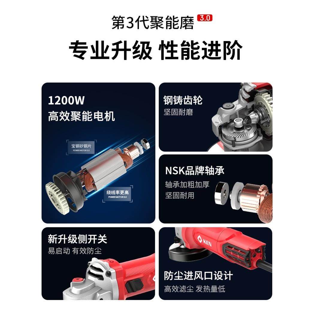 锐奇100角磨机1200W多功能打磨切割抛光除锈开槽9910/9910A磨光机