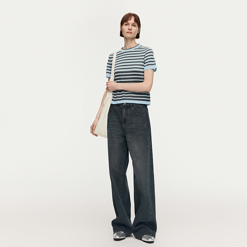 【商场同款】AUM噢姆2026年春季新款短款撞色条纹羊毛针织上衣女