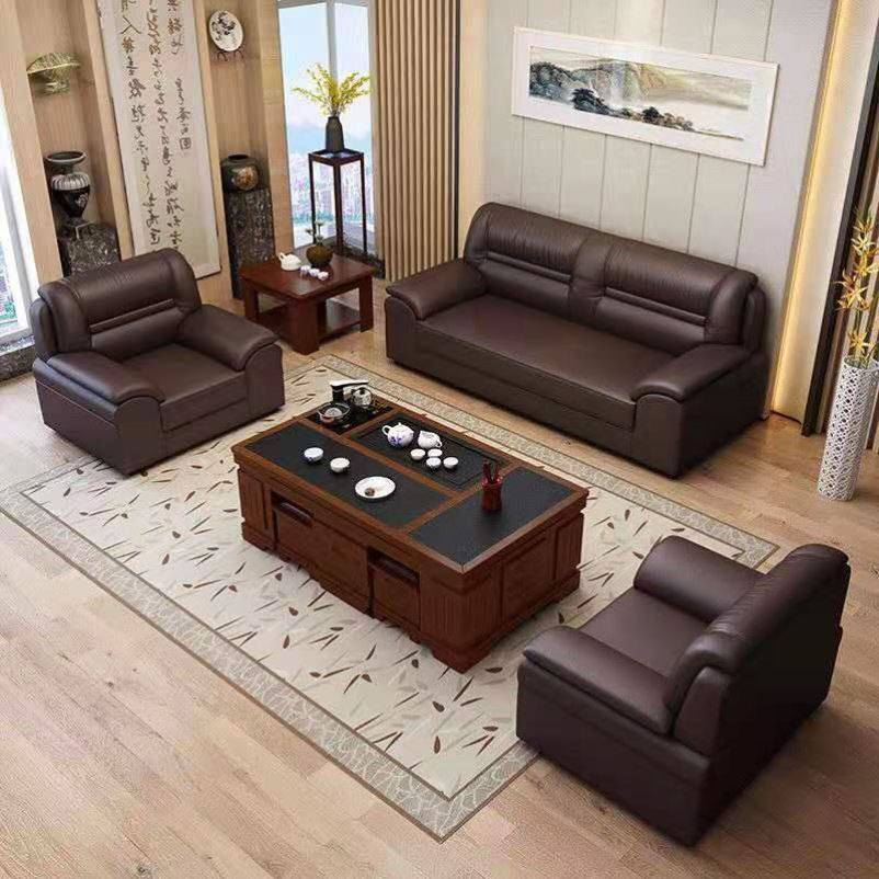办公沙发茶几组合商务会客接待沙发现代客厅办公室皮艺沙发三人位