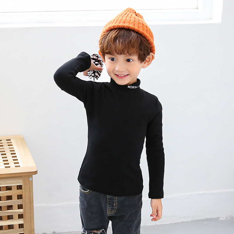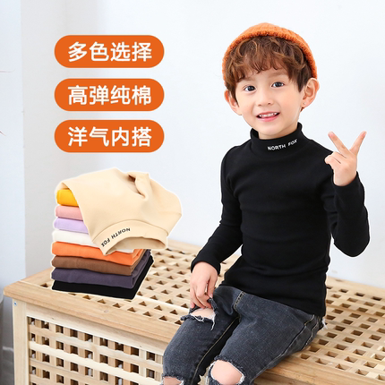 儿童半高领打底衫男童女童黑色秋冬款a类纯棉宝宝内搭春秋长袖t恤