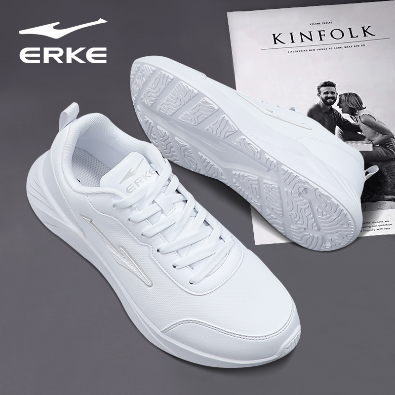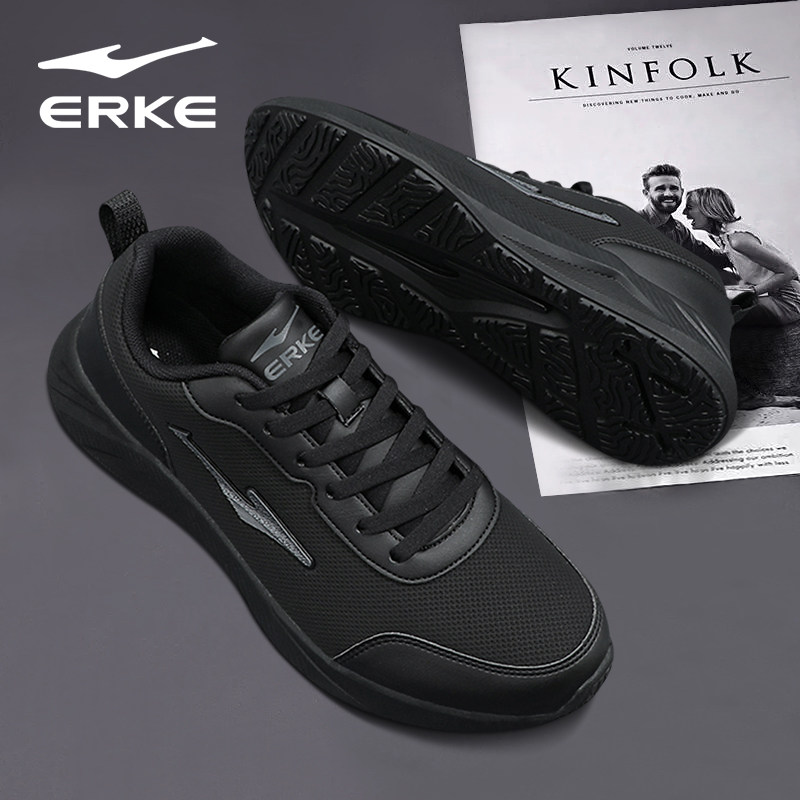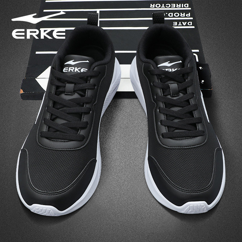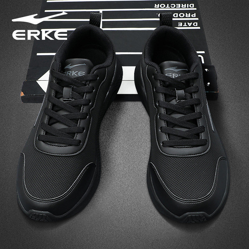 鸿星尔克男鞋冬季新款erke皮面防水运动鞋官方旗舰黑色百搭跑步鞋