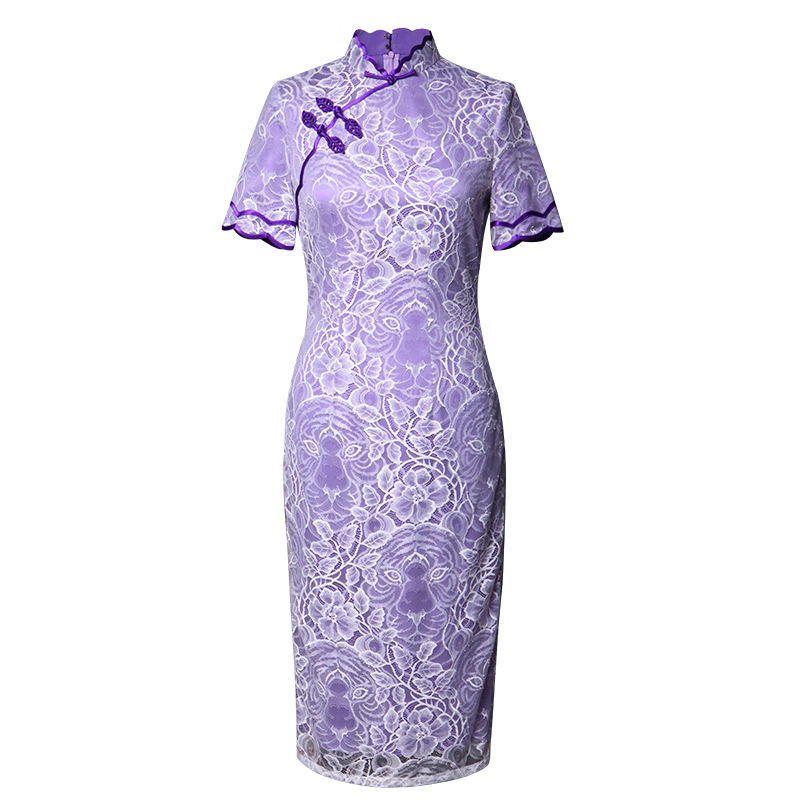 蝶恋纤黛 春夏高档真丝旗袍年轻款日常手工花扣崔万志旗袍连衣裙