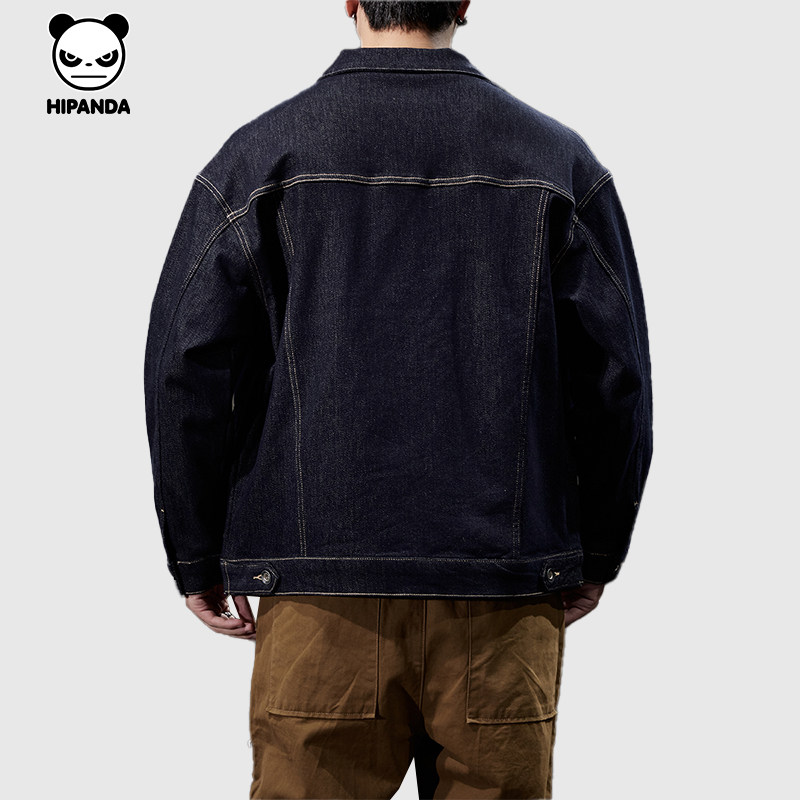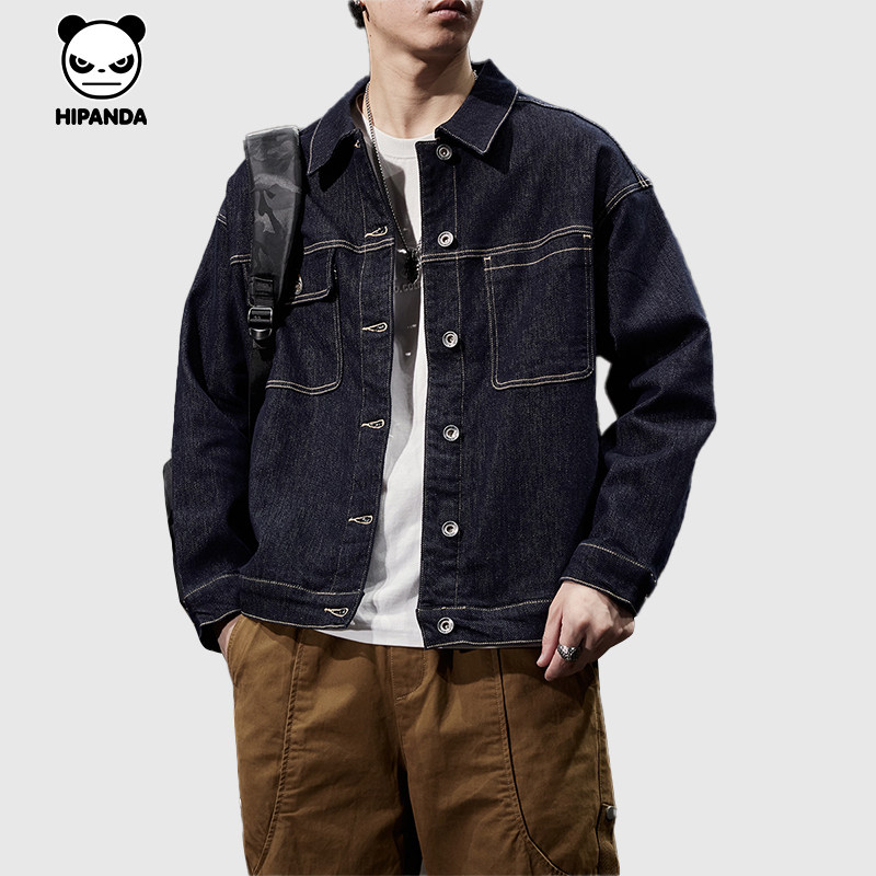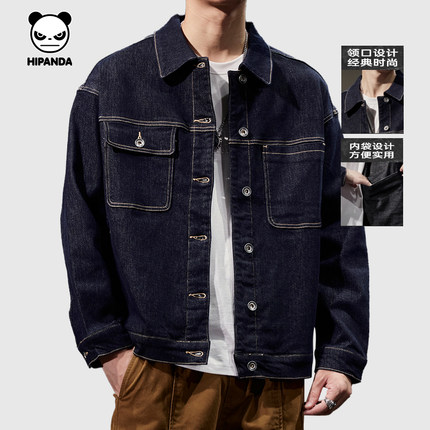 Hipanda你好熊猫牛仔外套男工装休闲宽松潮牌2025秋冬款上衣夹克