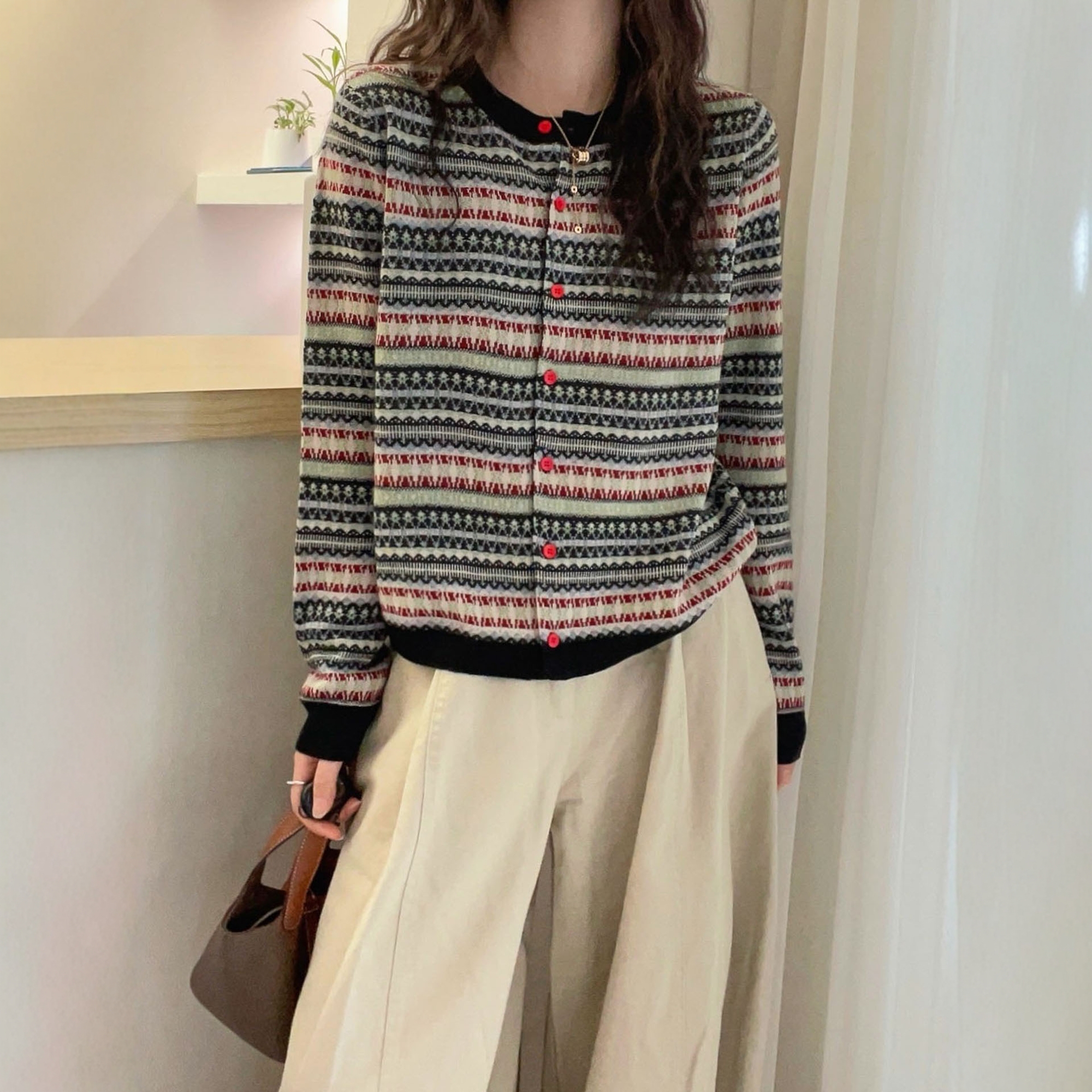 复古提花绵羊毛针织开衫女欧洲站2025秋装新款欧货女装毛衣外套潮