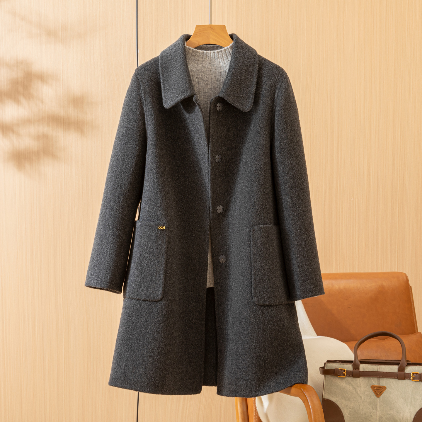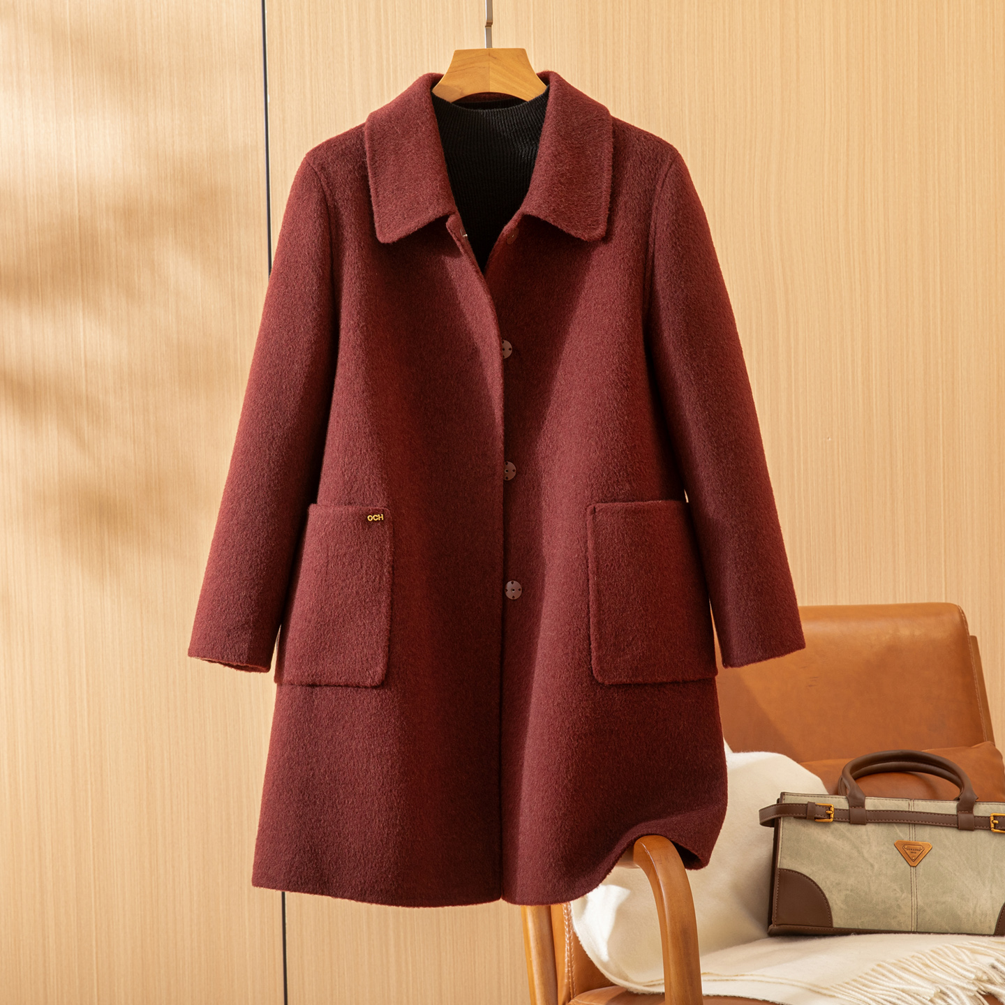 气质妈妈2025新款双面羊绒大衣女中长款秋冬翻领小个子羊毛呢外套