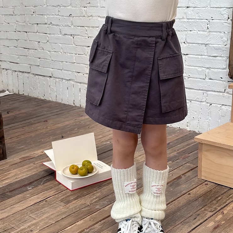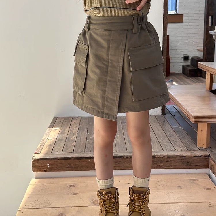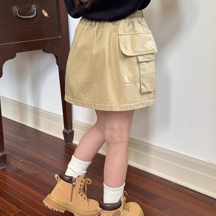 儿童口袋不规则工装风短裙潮女童秋装裙子休闲韩版纯色洋气半身裙