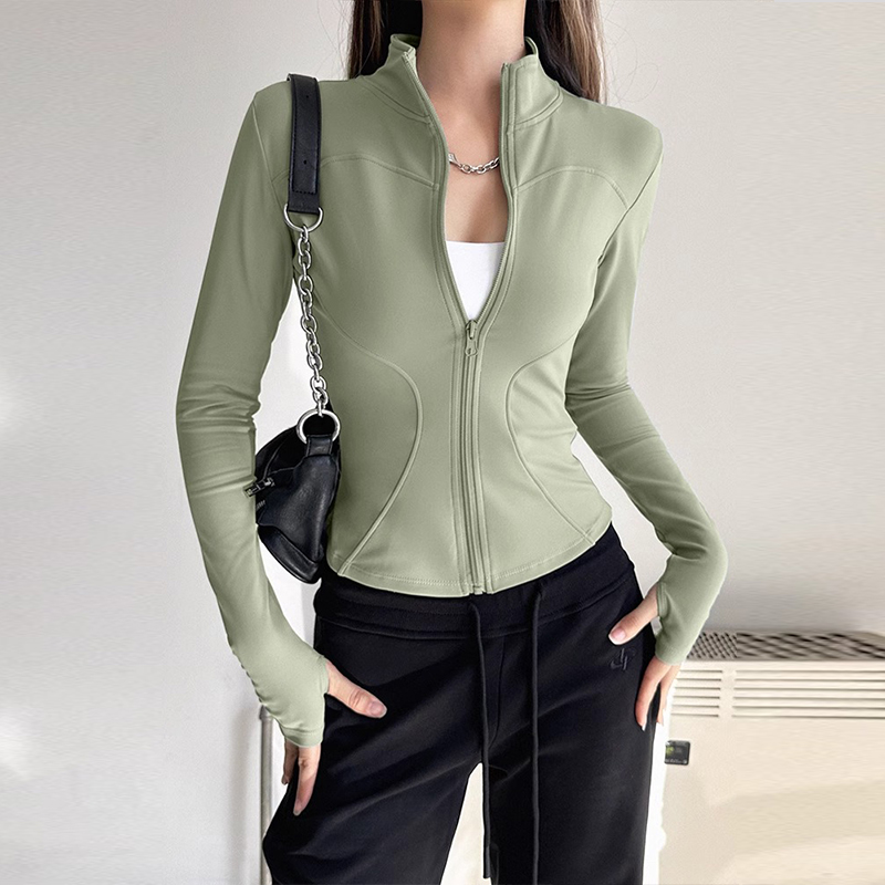 薄绒立领长袖瑜伽外套跑步专业普拉提训练运动健身服内搭修身卫衣