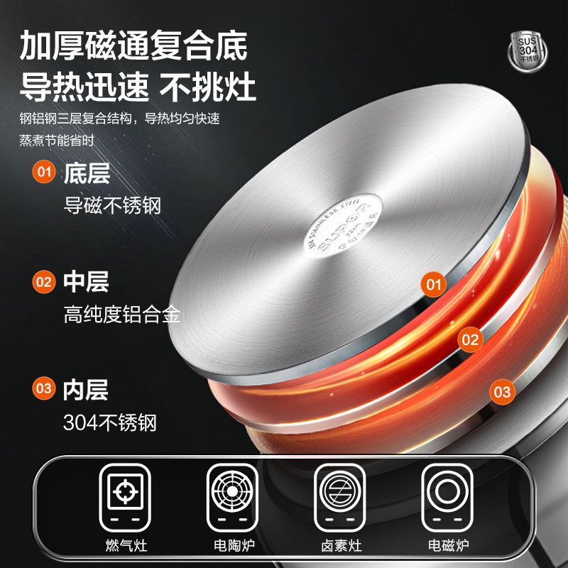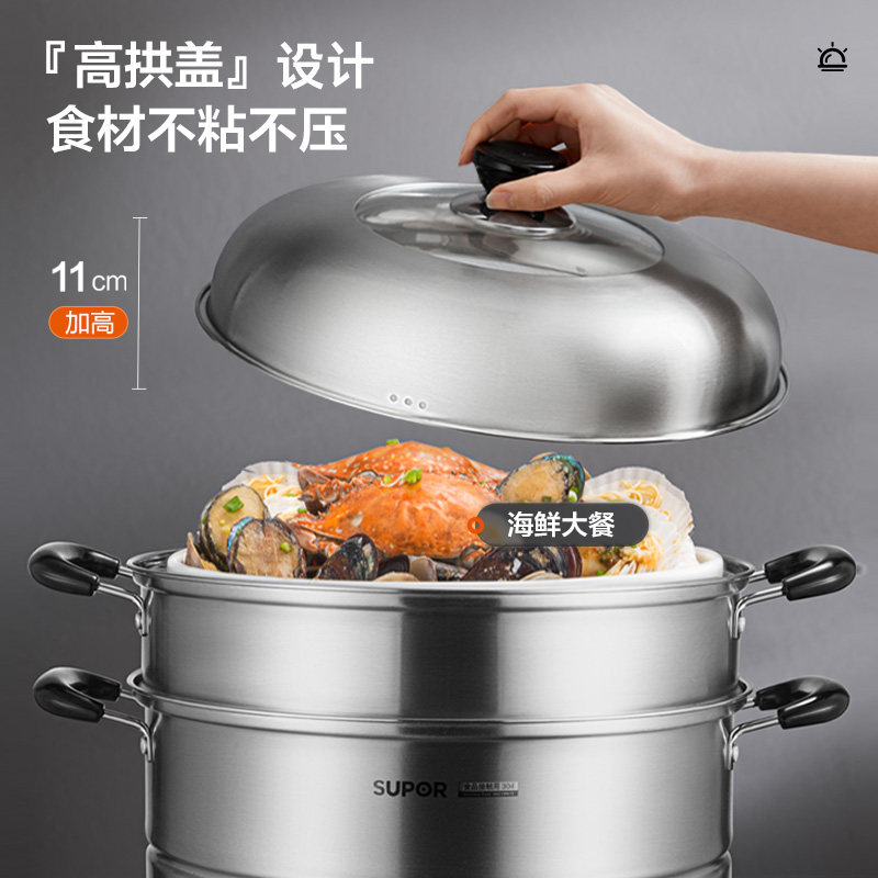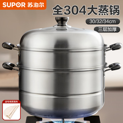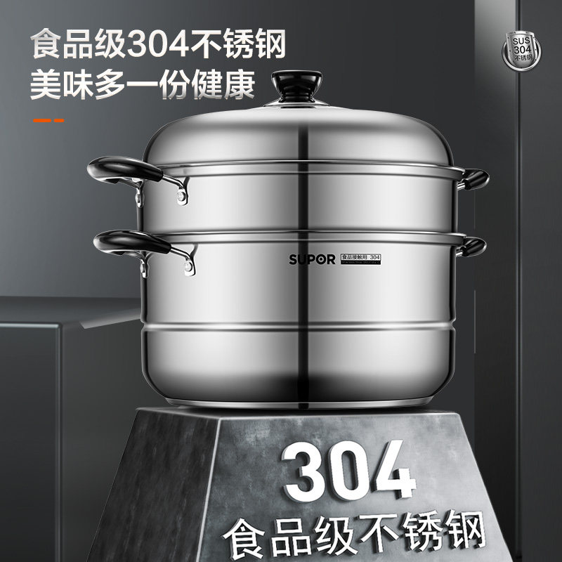 苏泊尔蒸锅家用304不锈钢2双层蒸笼大号加厚煤气灶电磁炉蒸鱼馒头