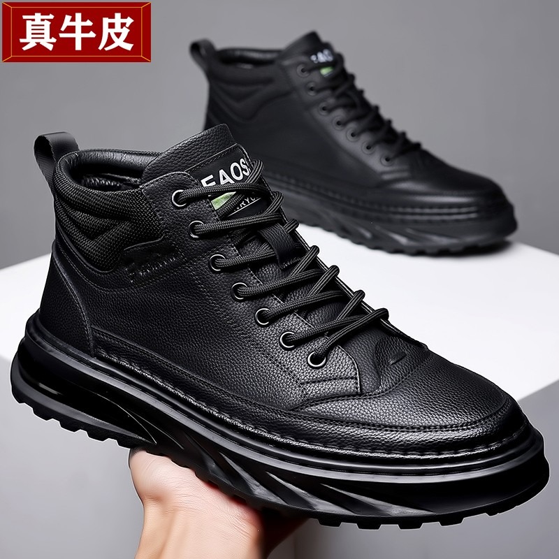 新款秋冬季男士商务休闲皮鞋男款加绒保暖二棉鞋内增高帮板鞋男鞋