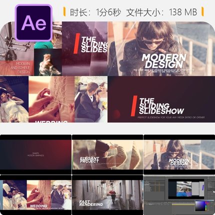 电影感滑动相册回忆开场片头AE模板影视后期特效制作素材包