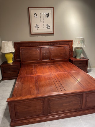 年年红红木家具大果紫檀双人床中式古典双人床实木大床