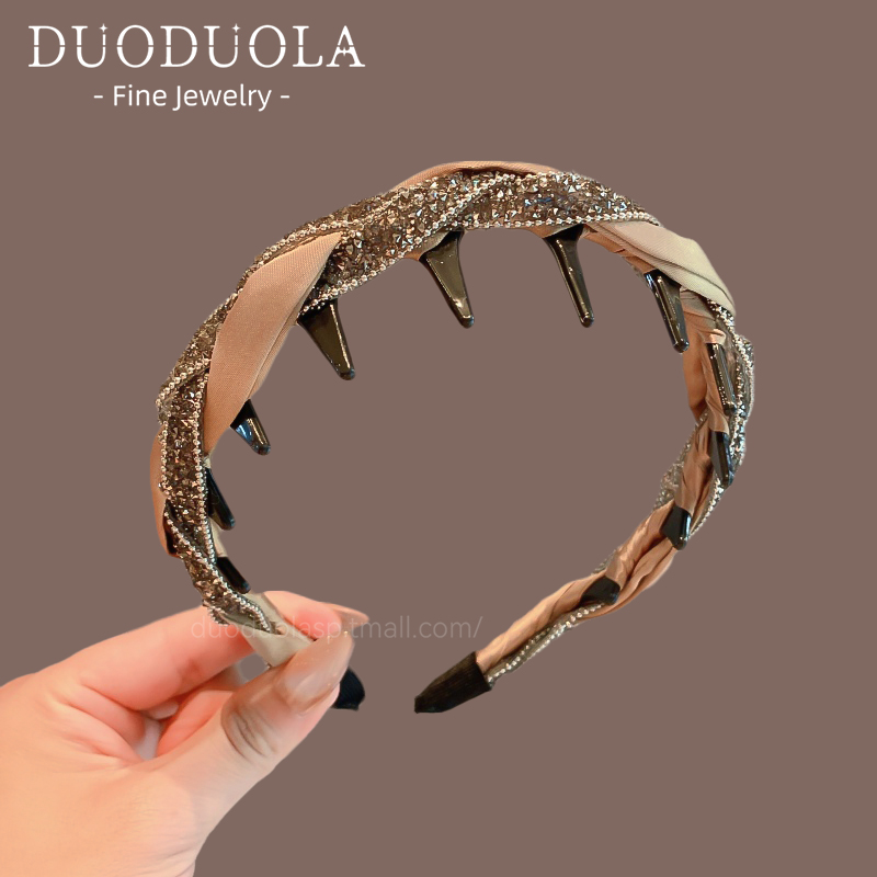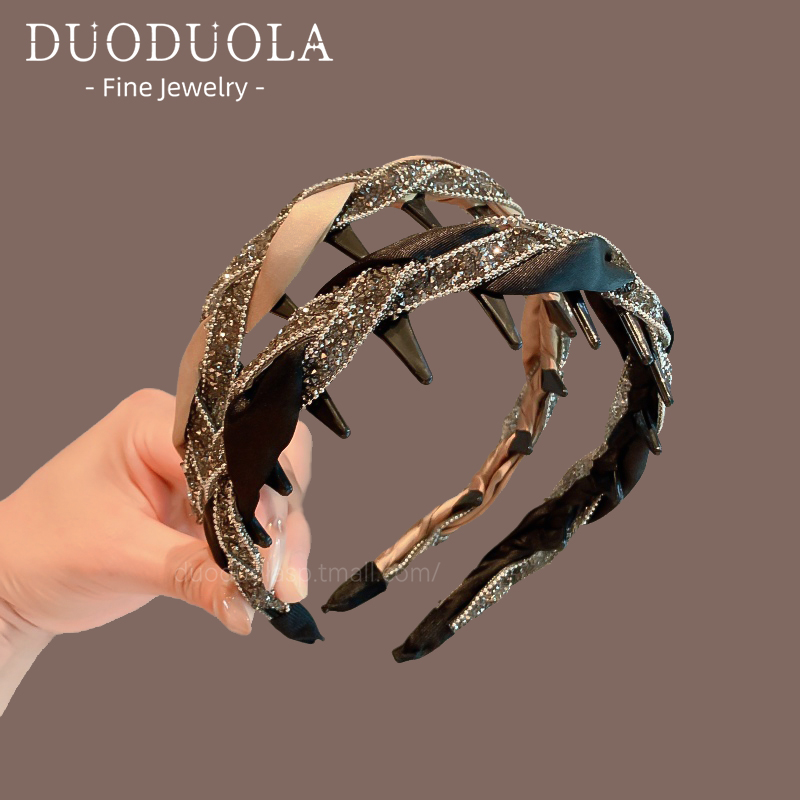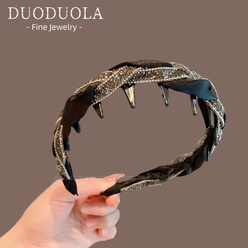 高级感黑色显气质窄版麻花带齿防滑高颅顶发箍百搭头箍女发卡发饰