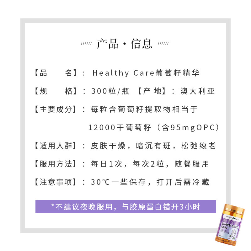 澳洲Healthy Care葡萄籽粉原花青素精华胶囊HC维C12000mg300粒