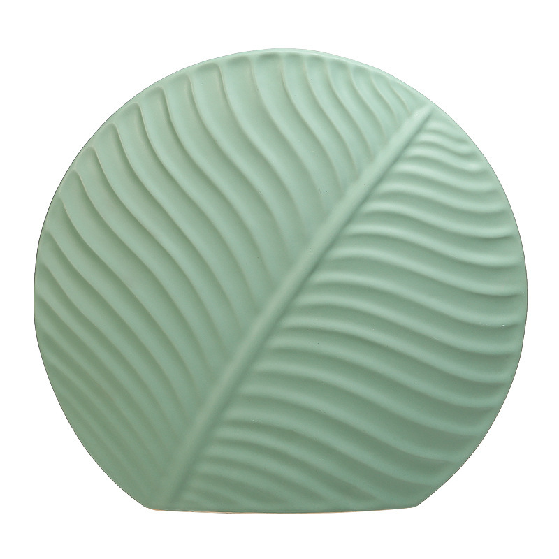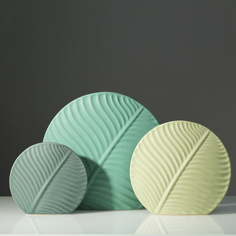 北欧陶瓷花瓶客厅装饰品插花花瓶桌面创意绿色树叶花艺摆件