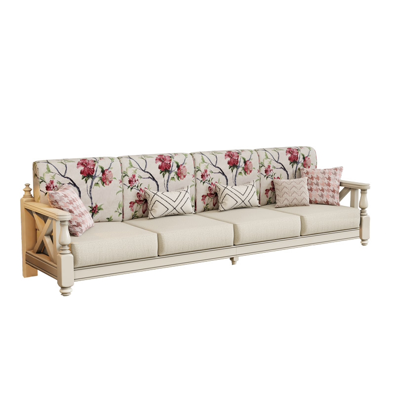 美式白色沙发实木布艺复古小w美乡村小户型客厅家具三人位123组合