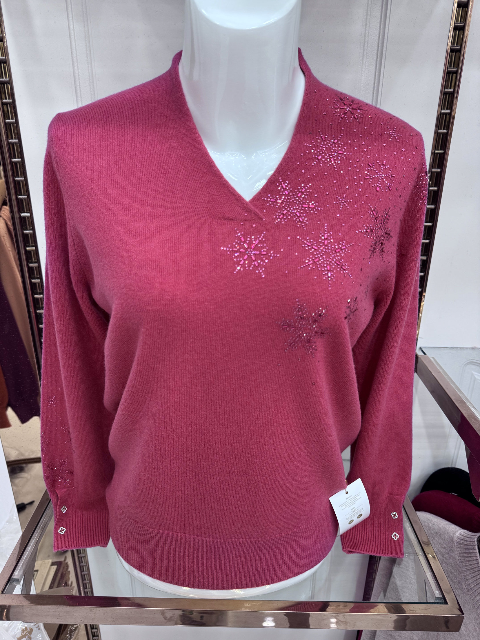 限时福利!专柜款V领高端羊毛衫妈妈装本命年毛衣中老年打底大码