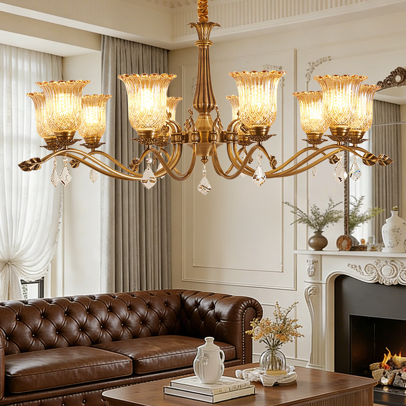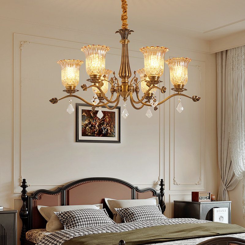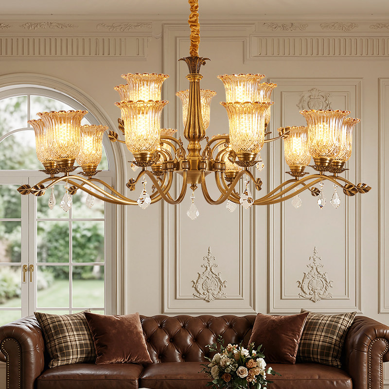 法式全铜水晶客厅吊灯大厅主灯复古美式餐厅大气家用高档灯具