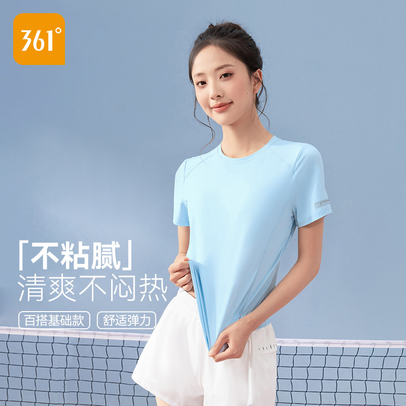 361运动上衣短袖t恤女2026新款瑜伽服蓝色夏季跑步训练透气健身服