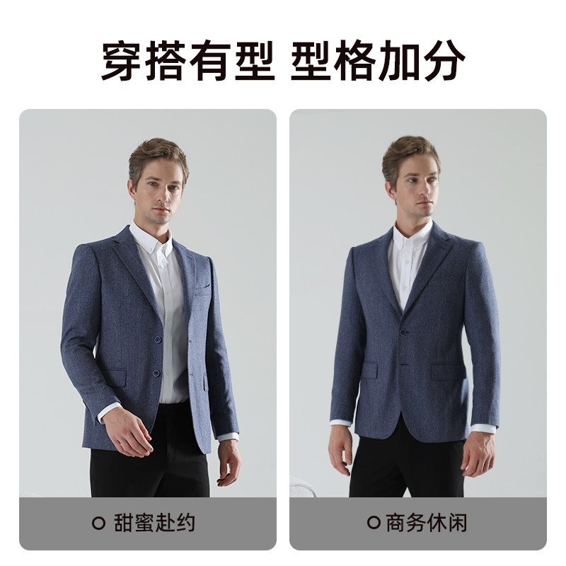 【100%羊毛】乔治白男士秋冬商务休闲百搭西服青年时尚通勤深蓝