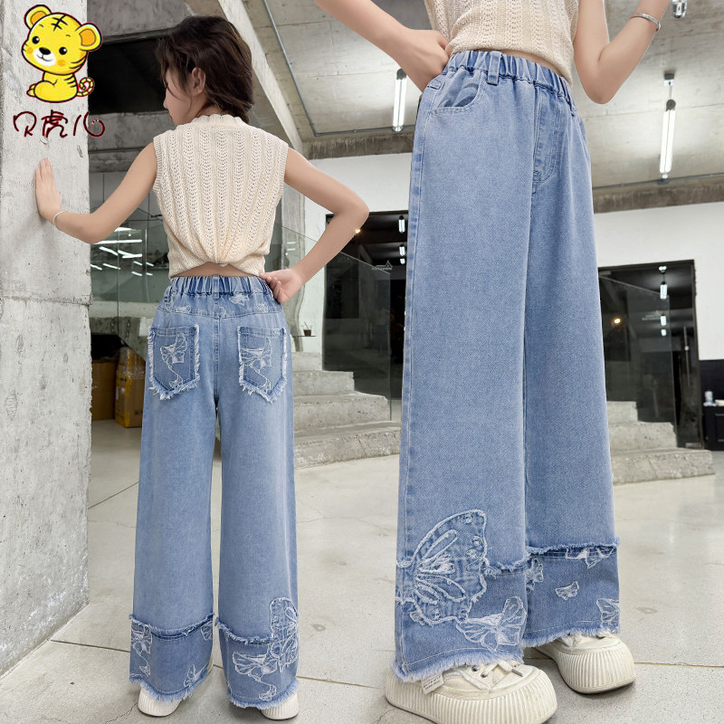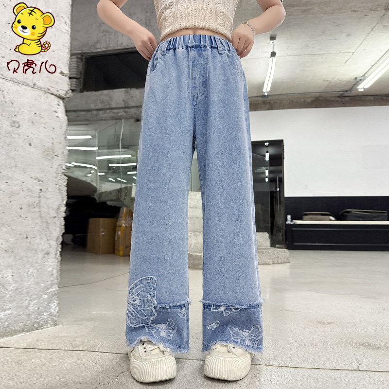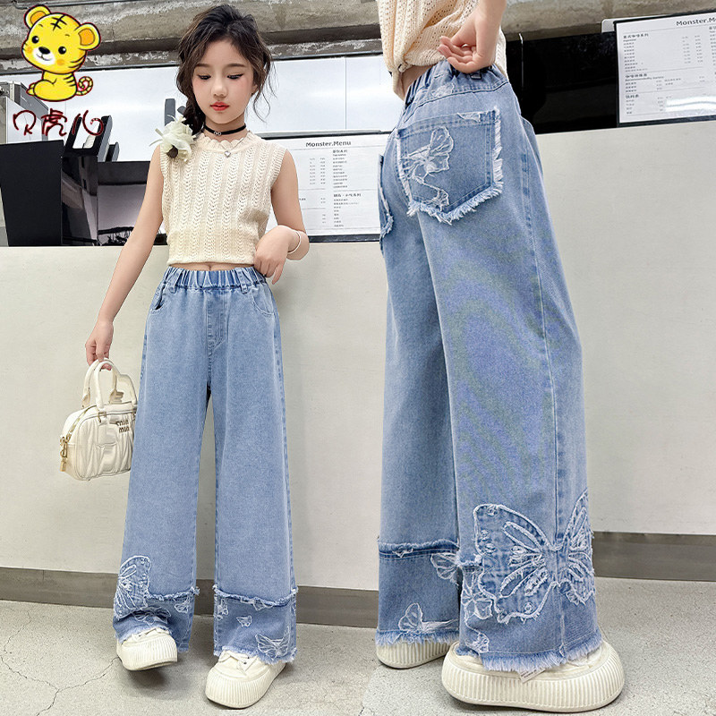 女童裤子夏季薄款2025新款中大童休闲直筒阔腿宝宝夏装儿童牛仔裤