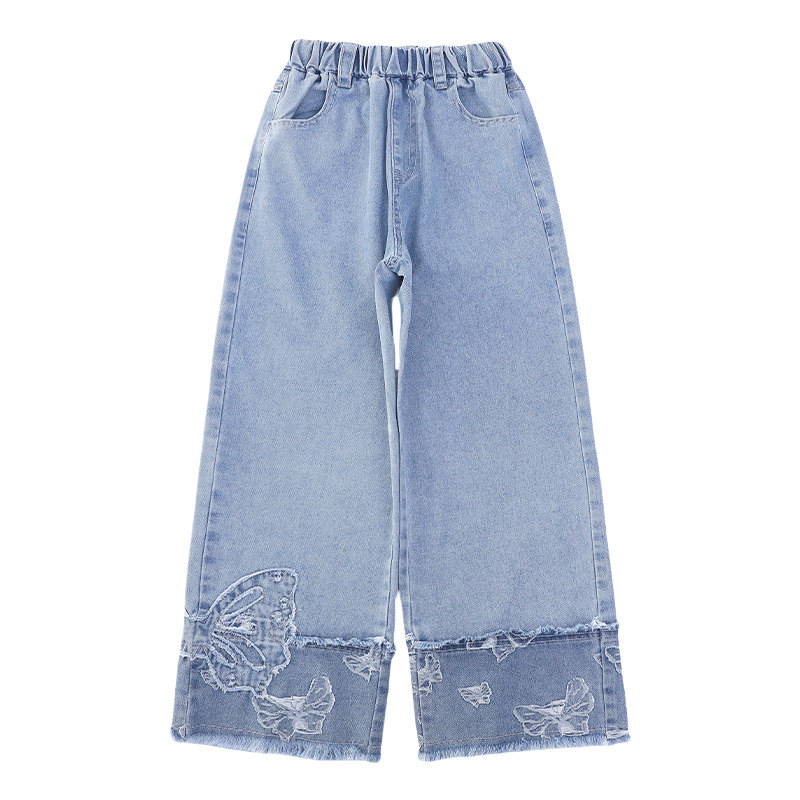 女童裤子夏季休闲直筒阔腿牛仔裤
