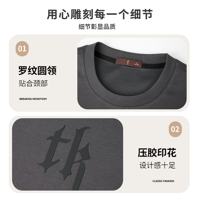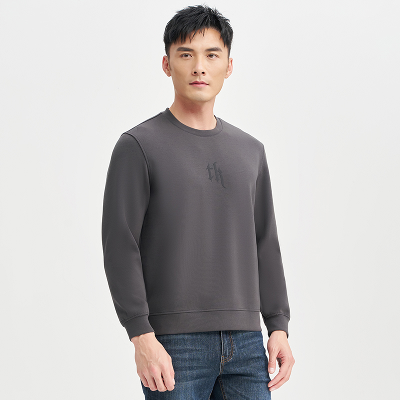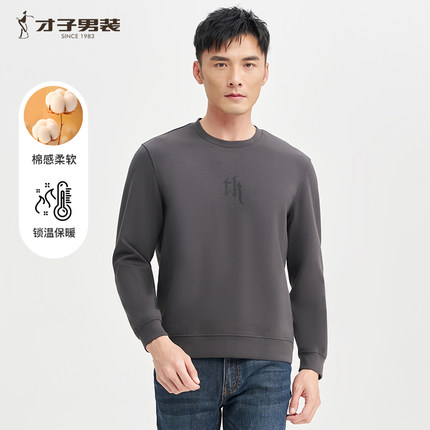 才子男装圆领卫衣男士2025春季新款压胶印花宽松休闲无帽套头上衣