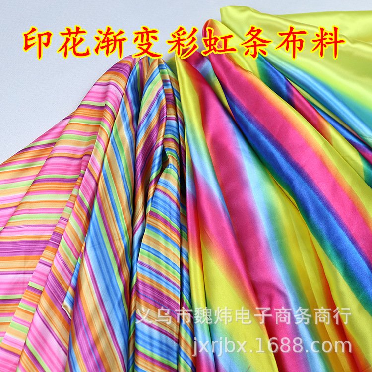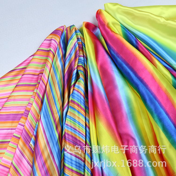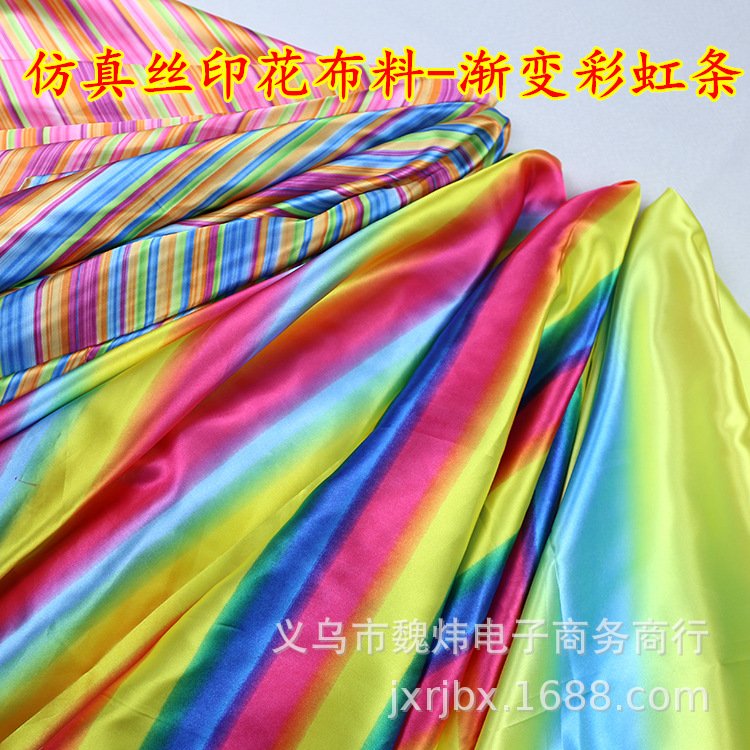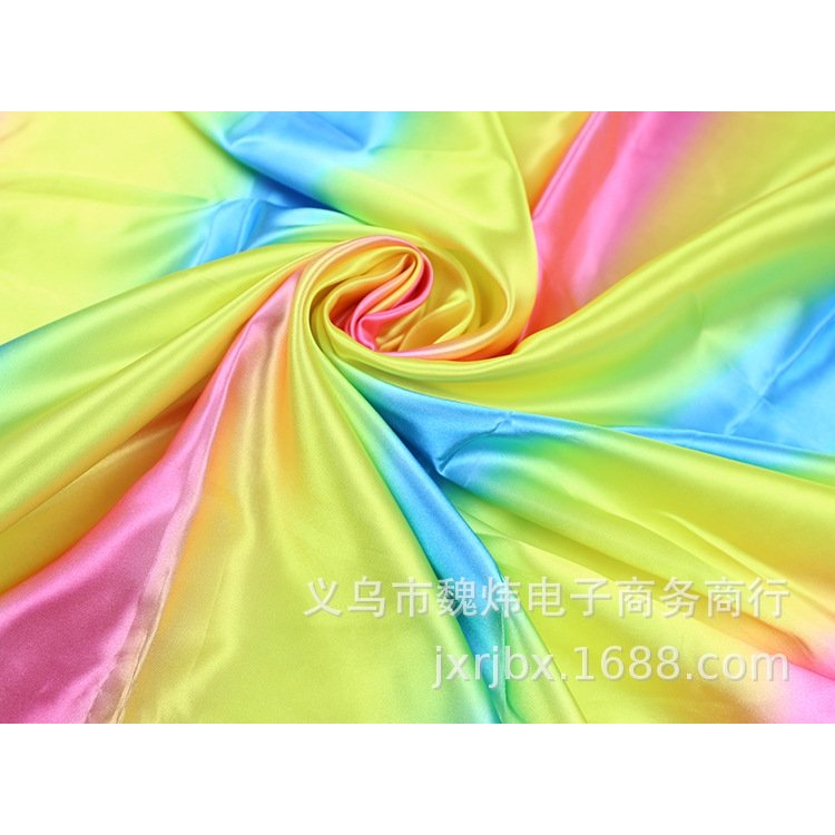 渐变七彩仿真丝印花色丁布料 丝绸面料装饰服装布料DIY彩虹印花布