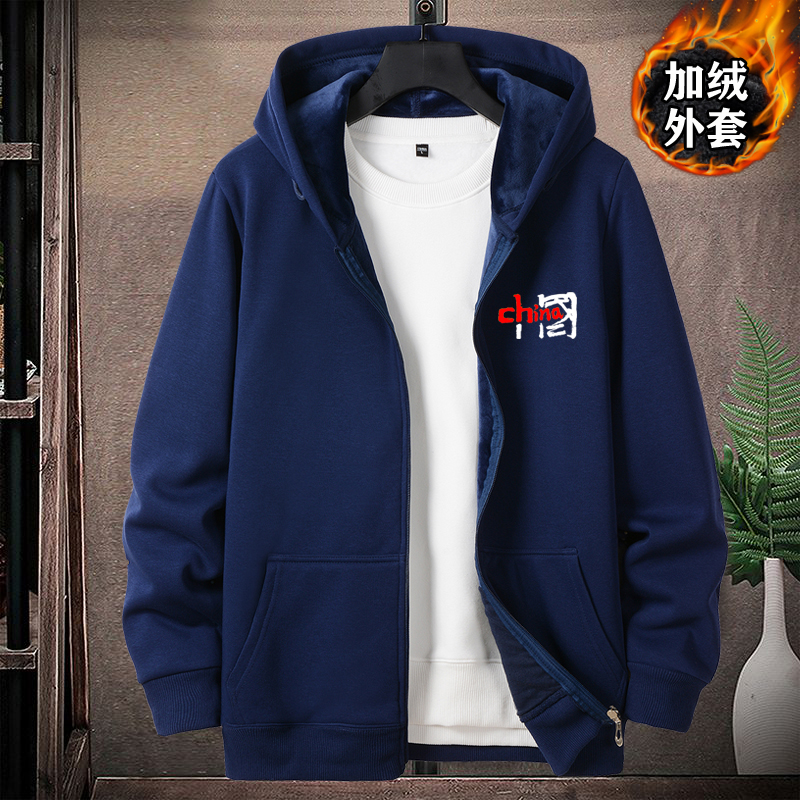 秋冬款外套开衫卫衣男百搭加绒加厚大码夹克潮男生衣服连帽上衣男
