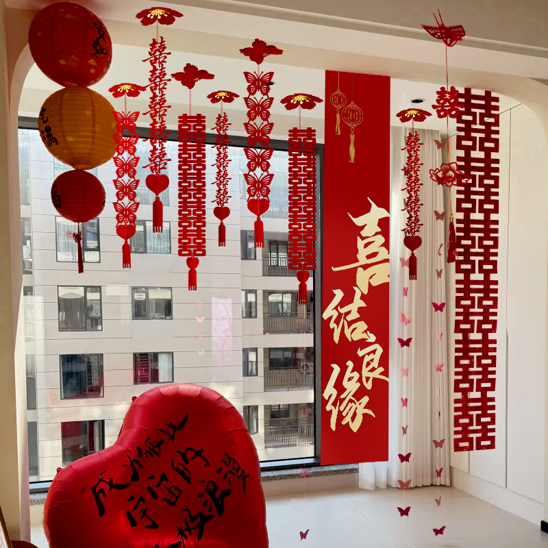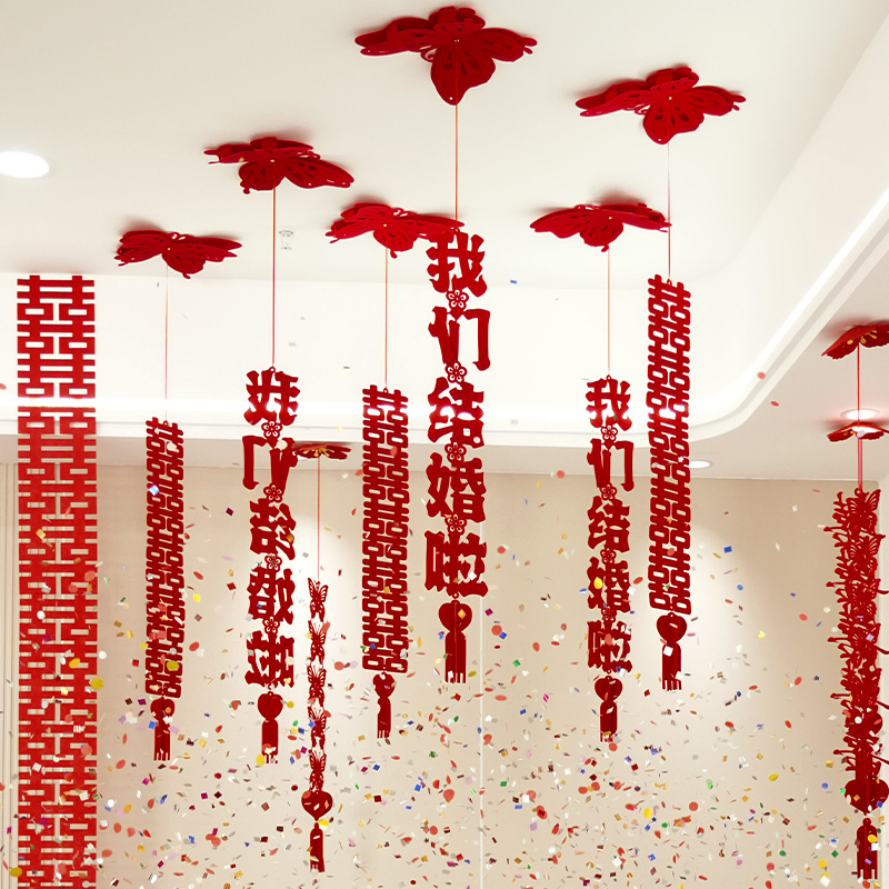 结婚布置喜字拉花挂件套装婚礼婚房吊顶卧室客厅装饰婚庆用品大全
