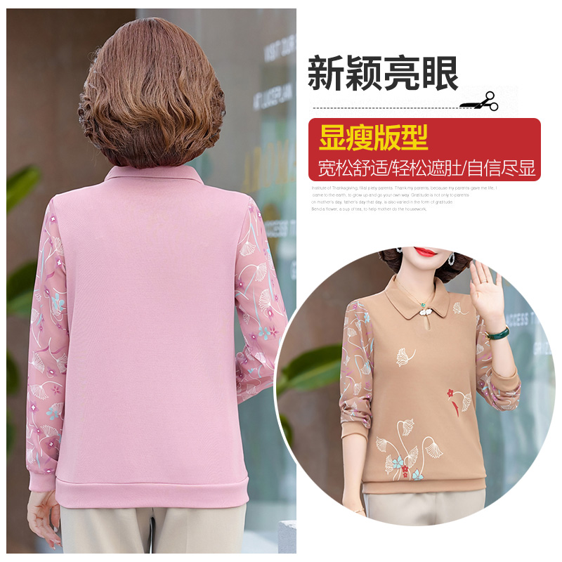 妈妈2023新款秋装长袖T恤小衫