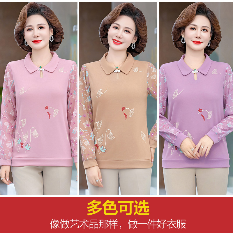 妈妈2025新款春秋装长袖T恤小衫洋气中老年女装减龄上衣针织打底