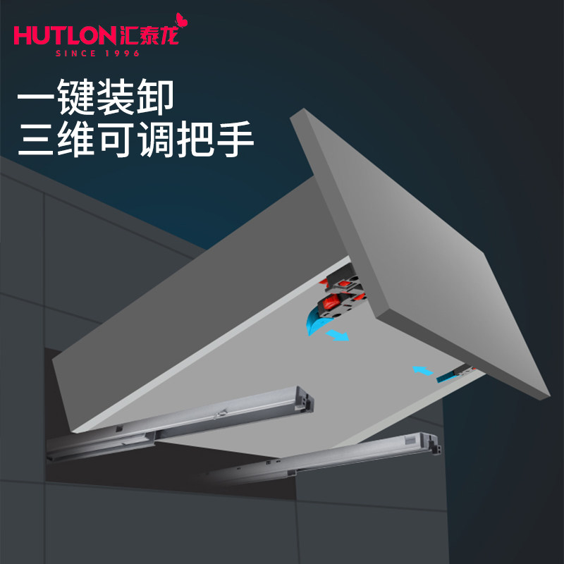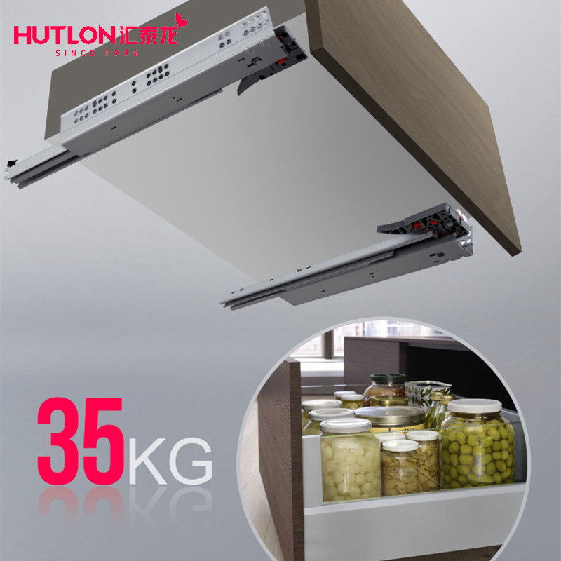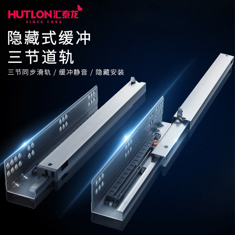 汇泰龙托底抽屉导轨橱柜抽屉底部隐藏式静音缓冲滑轨底装阻尼轨道