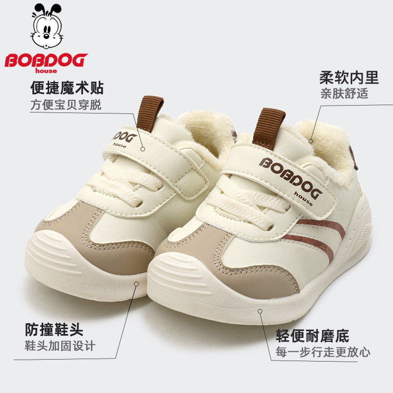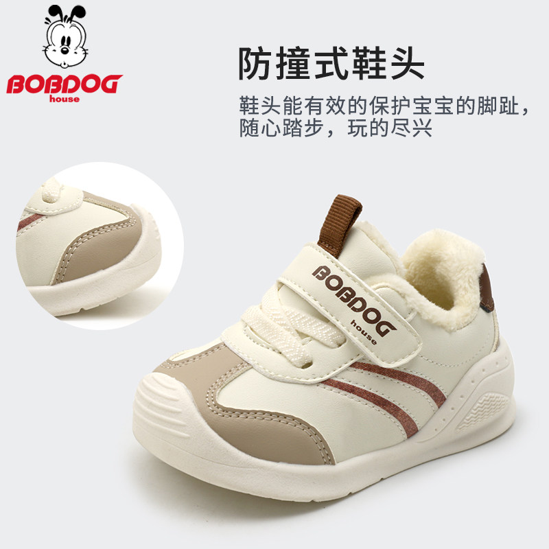 巴布豆House宝宝学步鞋加绒棉鞋1-4岁婴童皮面保暖男女稳步运动鞋