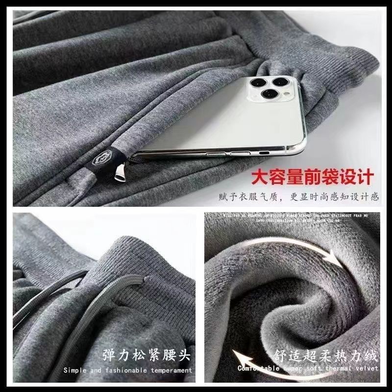 加绒加厚休闲长裤子男士秋冬季2025新款保暖束脚运动弹力潮裤百搭
