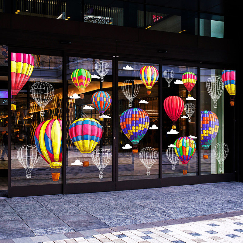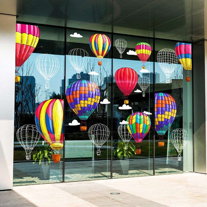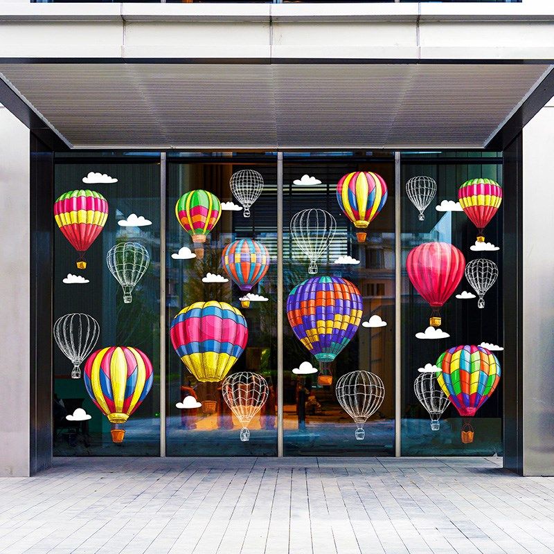 彩色热气球玻璃贴纸卡通幼儿园布置六一儿童节气氛装饰童趣场景贴