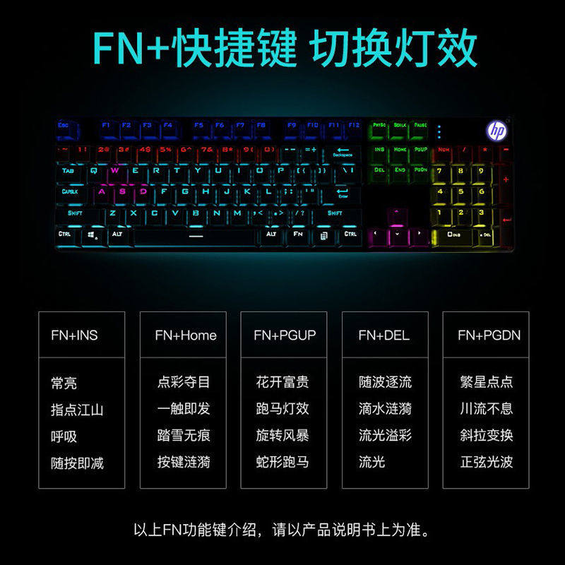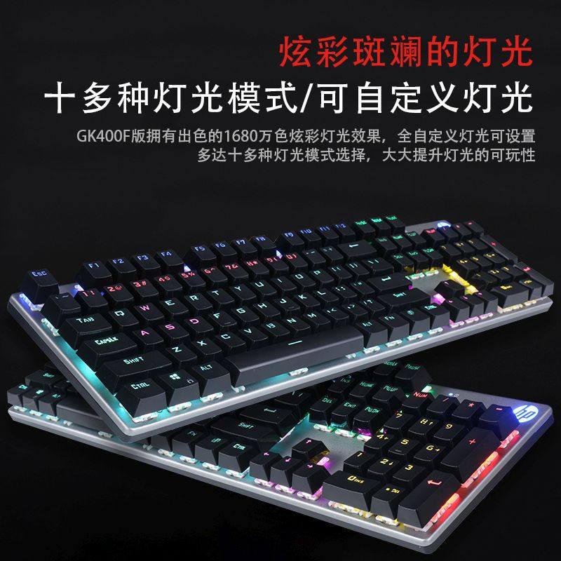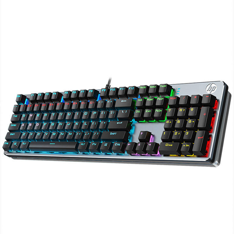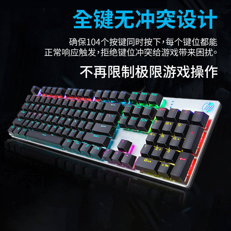 HP惠普机械键盘有线104全键无冲彩光游戏电竞金属面板电脑外设