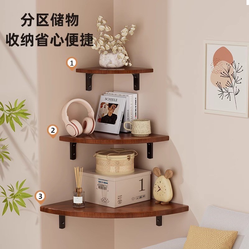 墙角置物架卧室墙l壁转角收纳隔板墙角壁挂拐角书架角落扇形三角