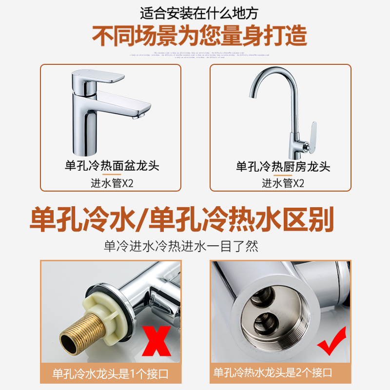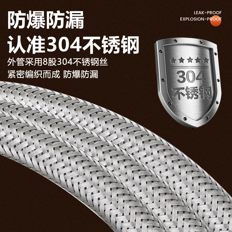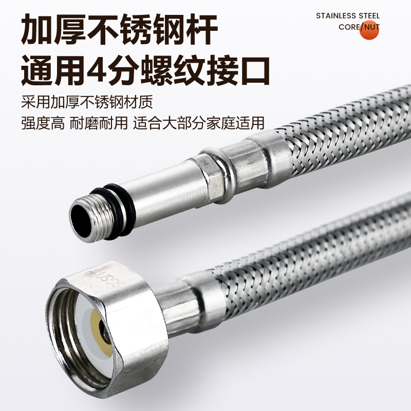 冷热水龙头防爆进水管厨房菜盆脸盆上水管304不锈钢编织尖头软管