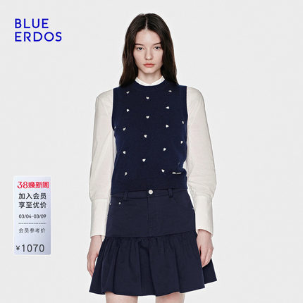 【明星同款】BLUE ERDOS26早春新心愿针织羊毛羊绒混纺刺绣背心女