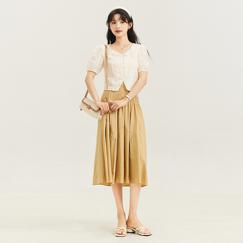 古木夕羊短袖莱赛尔泡泡袖小衫