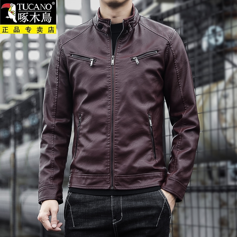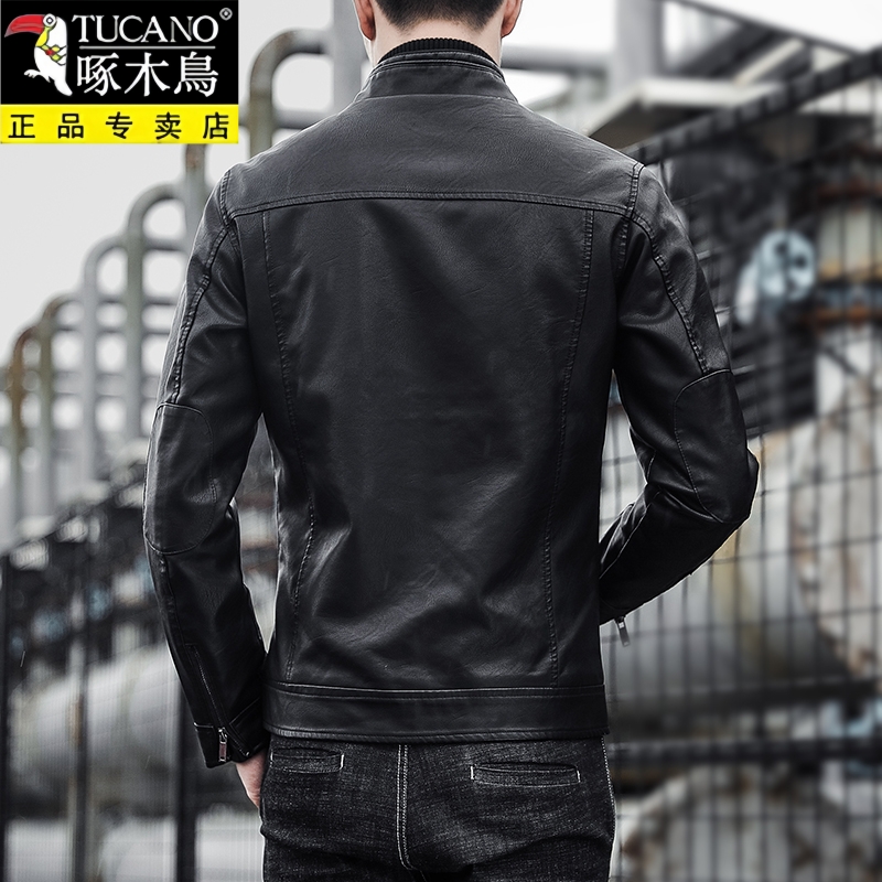 啄木鸟高档海宁真皮皮衣男士立领潮牌帅气休闲秋冬款机车皮夹克