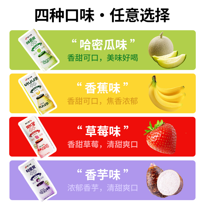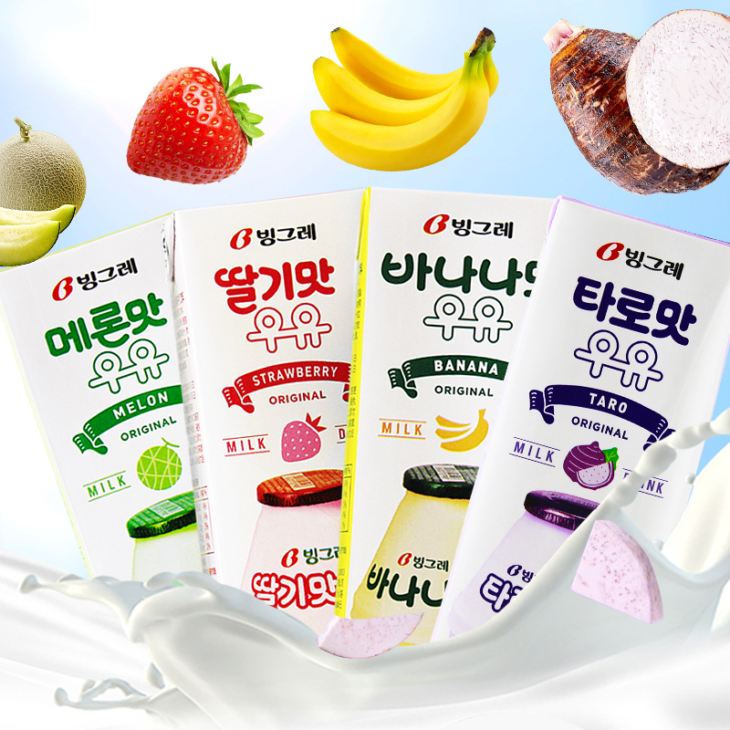 韩国进口宾格瑞香蕉牛奶饮料草莓哈密瓜香芋味儿童早餐奶饮品