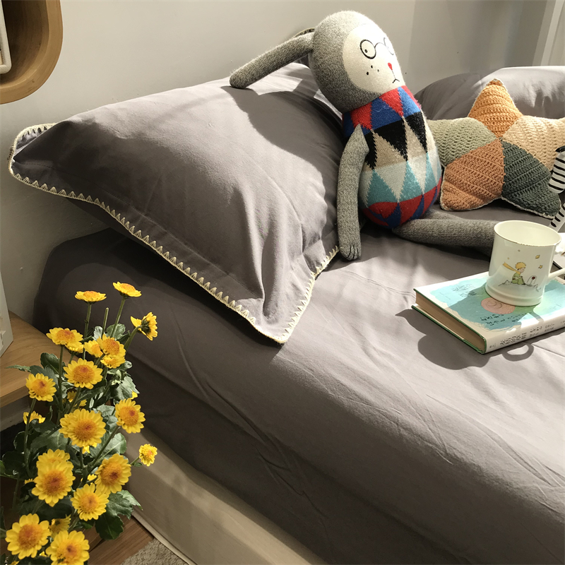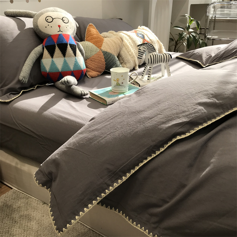 北欧简约四件套灰色纯色水洗棉