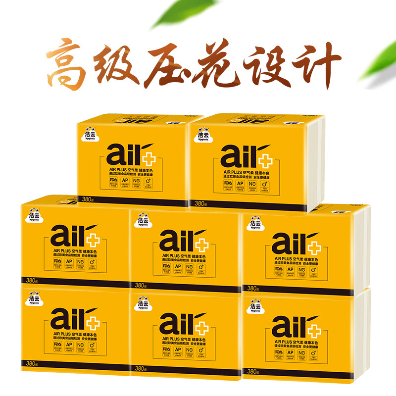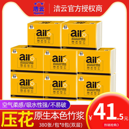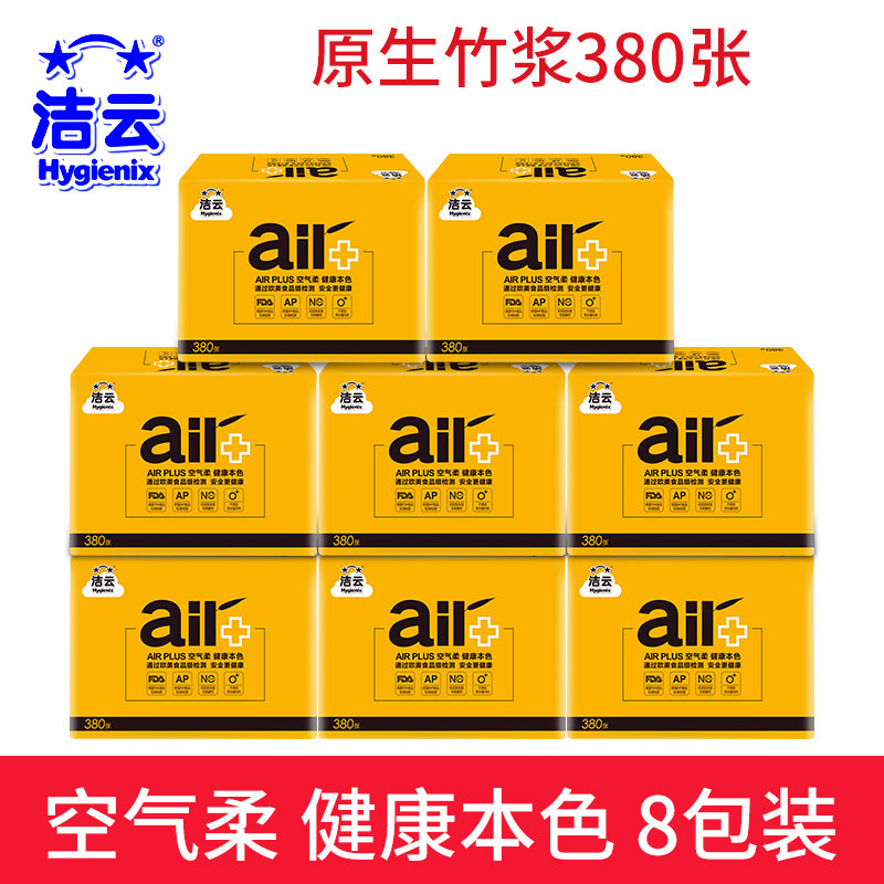 洁云本色卫生纸 厕纸家用空气压花手纸竹浆平板380张*8包实惠装