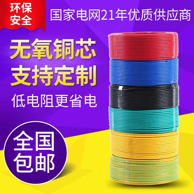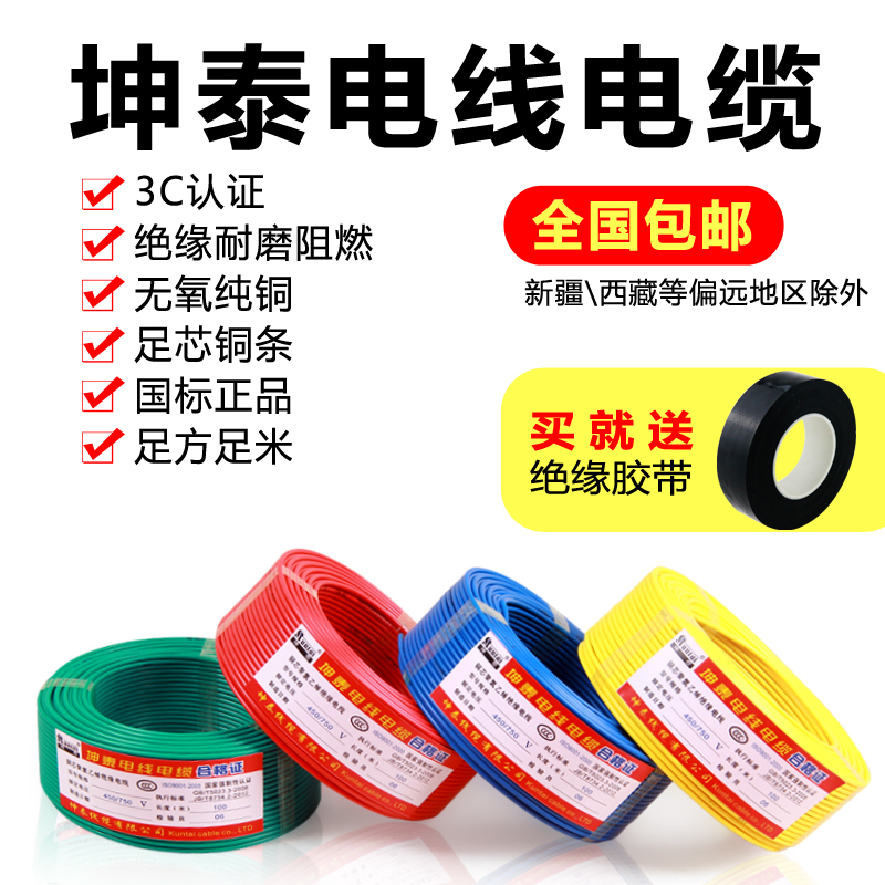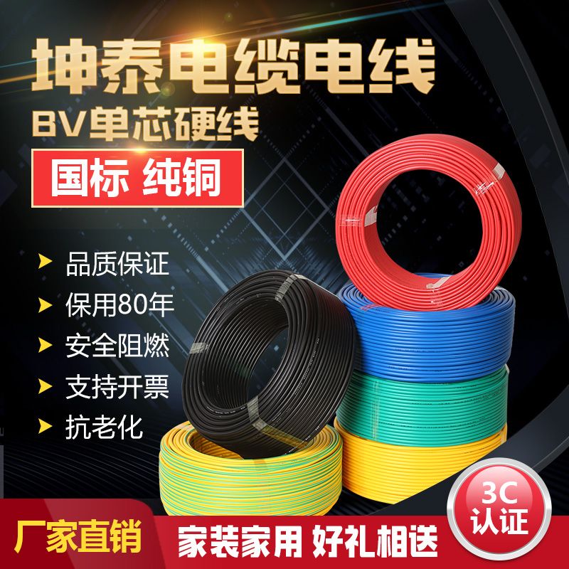 电线BV2.5平方铜芯4国标单芯纯铜硬线6家用1.5/1家装单股10电缆线
