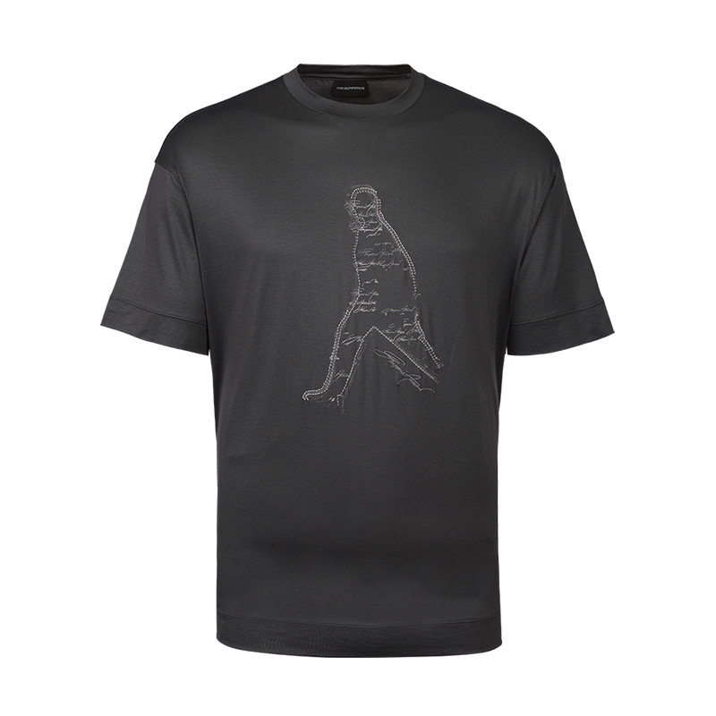 Armani/阿玛尼2025新款半袖体恤衫男士时尚休闲印花圆领短袖T恤潮