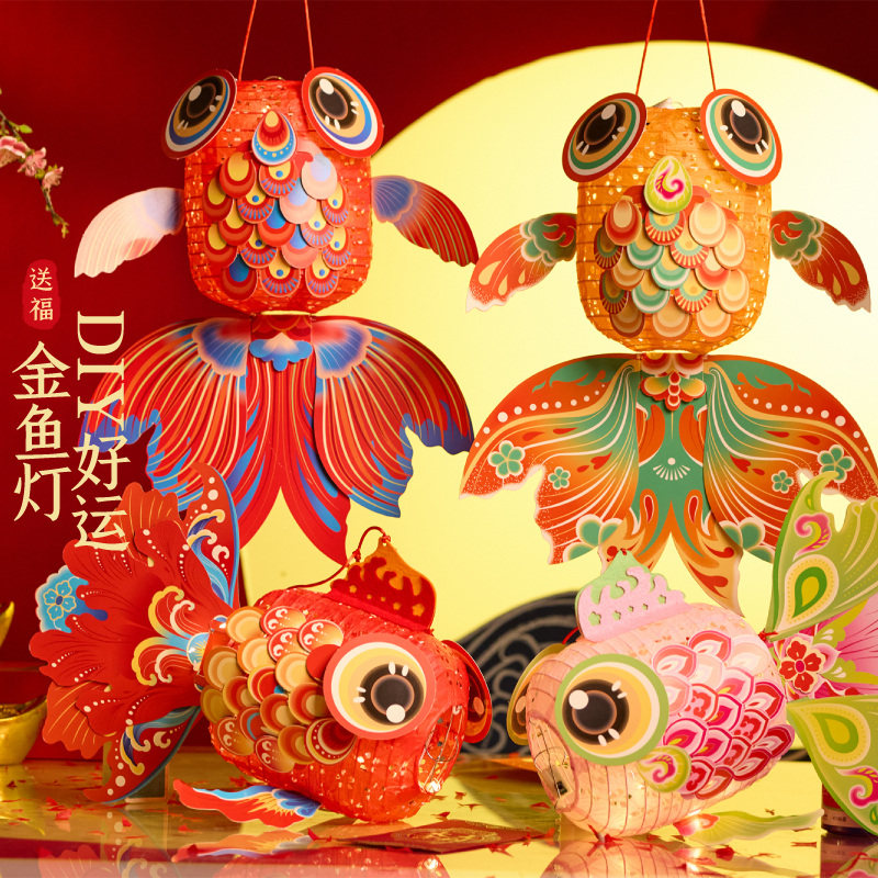 中秋节灯笼新款2025儿童手提金鱼灯diy材料包幼儿园手工制作花灯