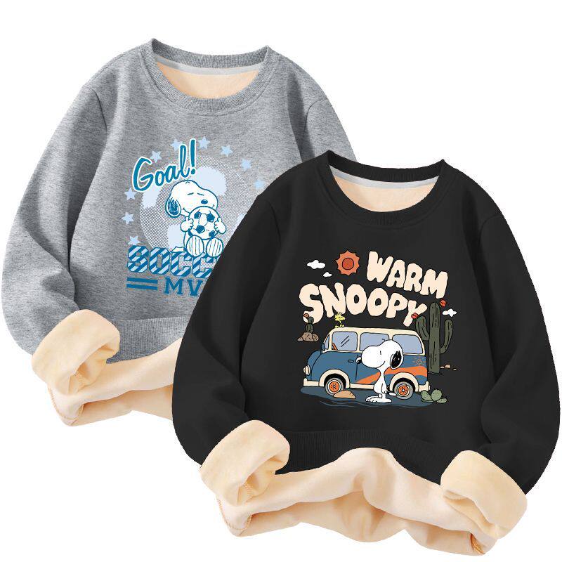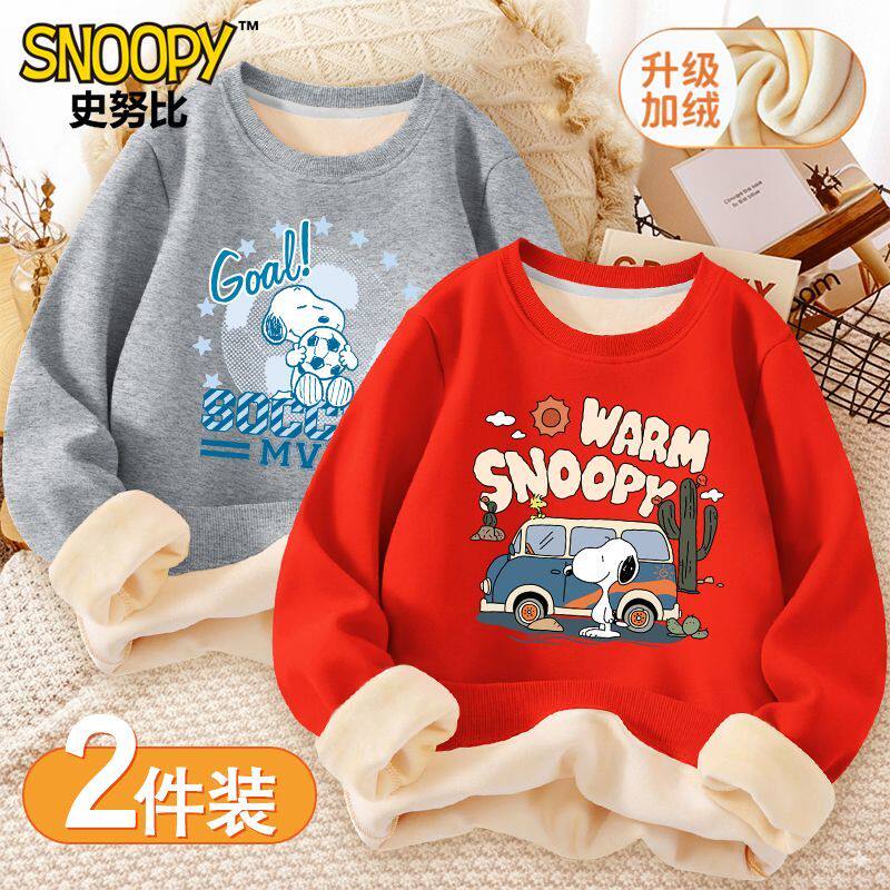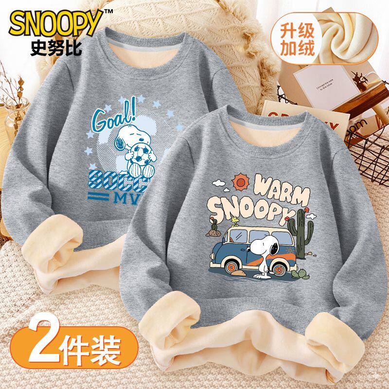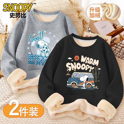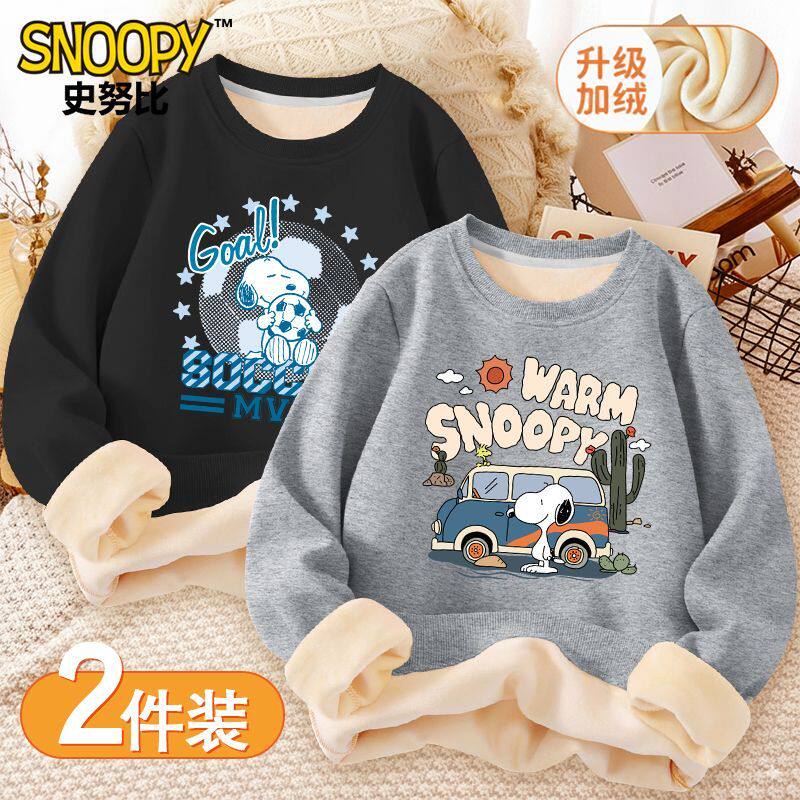 史努比儿童加绒卫衣秋冬一体绒冬季加厚上衣保暖男童冬装2026新款