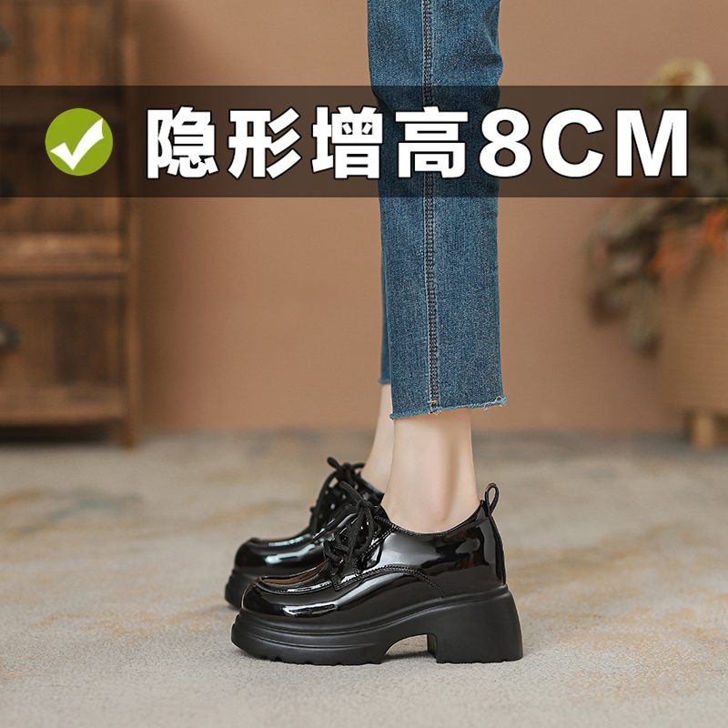 真皮内增高厚底英伦风小皮鞋女2025年新款系带高跟单鞋厚底乐福鞋