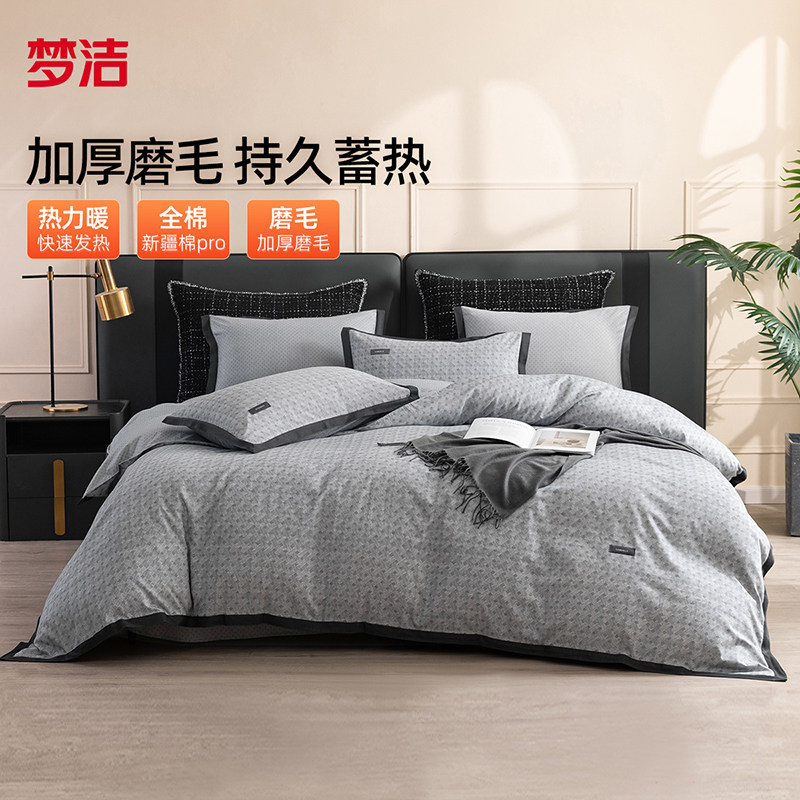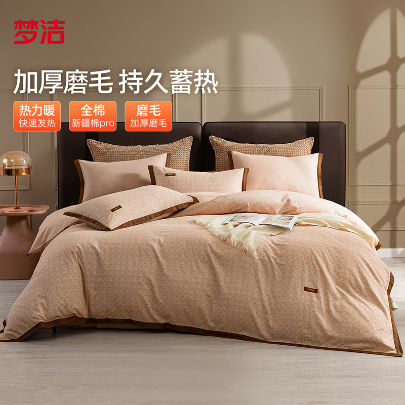 梦洁家纺加厚磨毛四件套全棉秋冬